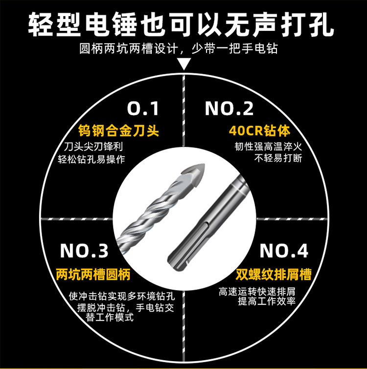 - Model: Round shank cross triangle drill five-piece set