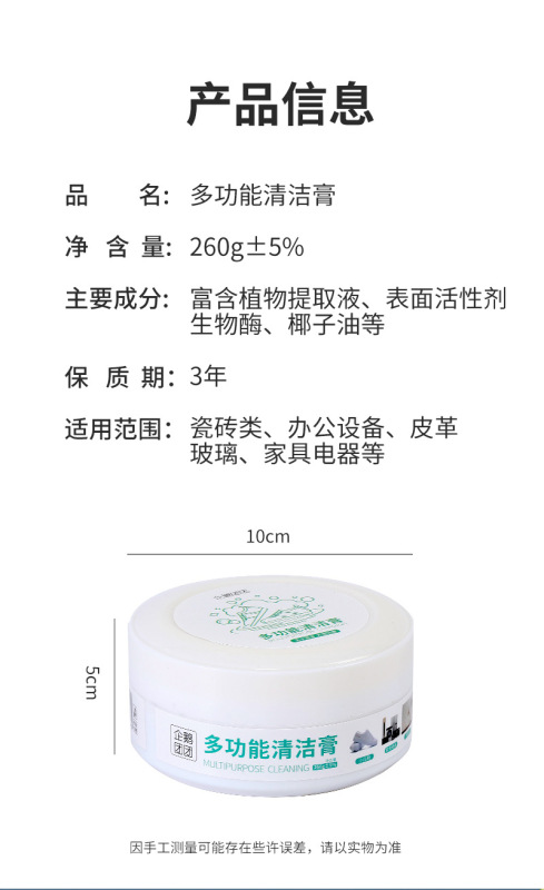 - Capacity: Multi-purpose Cleaning Cream 260g/box