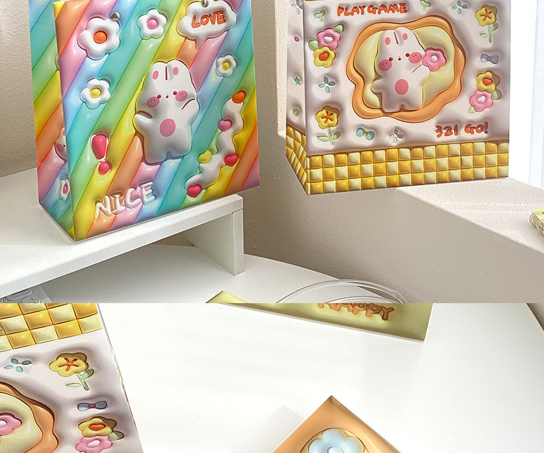 - Material: PP gift bag with vertical three-dimensional pattern and colorful rabbit