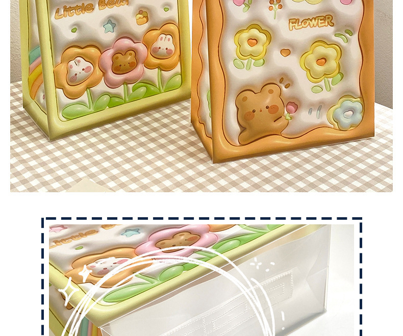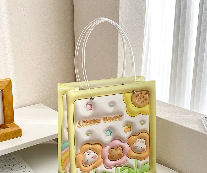 - Material: PP gift bag with vertical three-dimensional pattern of flowers, bears and rabbits