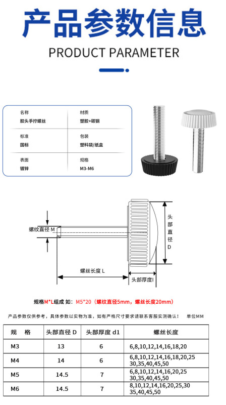 - Product specifications: M3*20/Black head