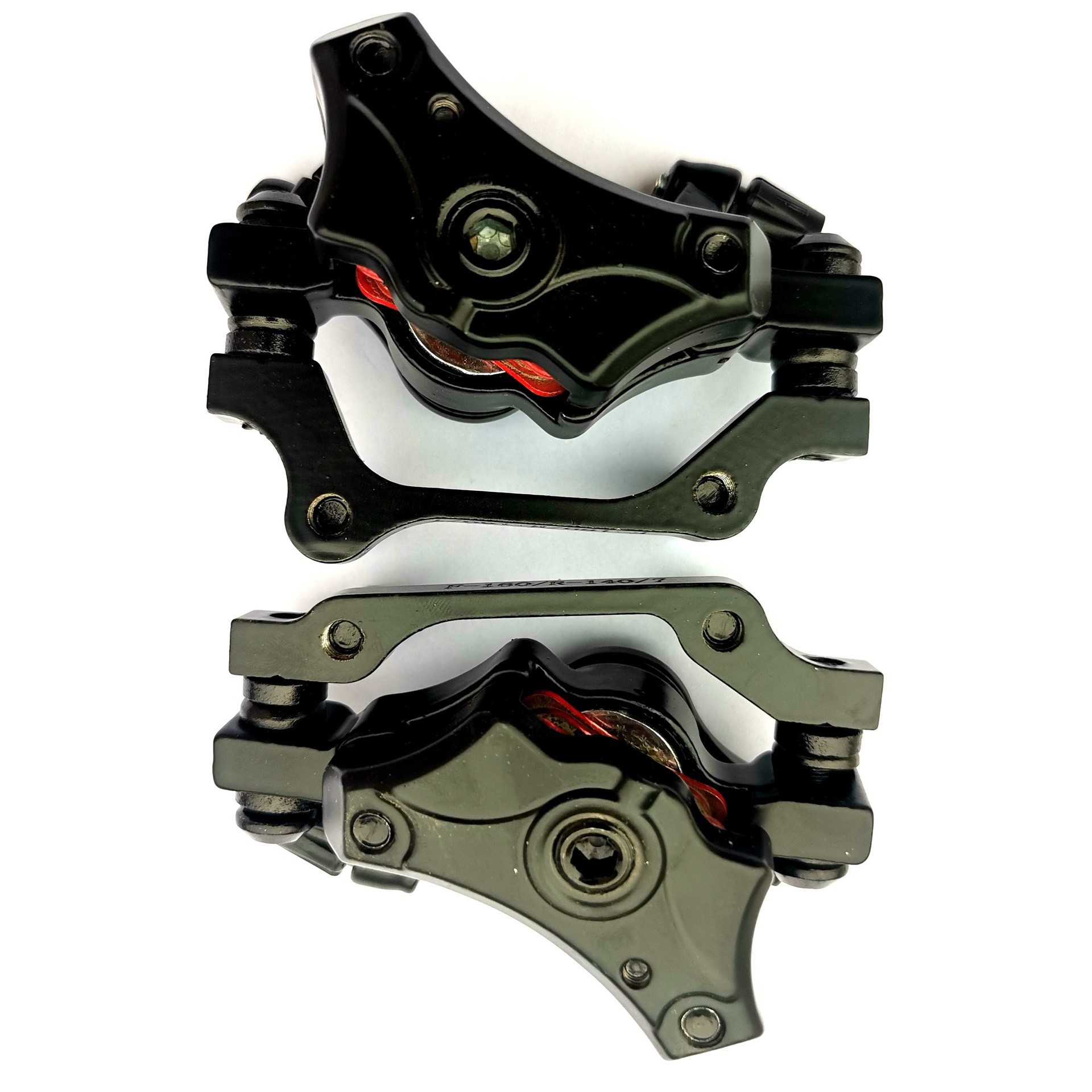 名稱:山地自行車蝶剎器孔距:51mmF是指前輪 R是指後輪(請看車上碟剎盤大小 選用合適碟剎器)F160 R140碟剎器(適合裝前輪160#碟剎盤 與 後輪140#碟剎盤)主要裝前輪使用較多,稱:前輪碟剎器F180 R160碟剎器(適合裝前輪180#碟剎盤 與 後輪160#碟剎盤)主要裝後輪使用較多,稱:後輪碟剎器 實物拍攝圖