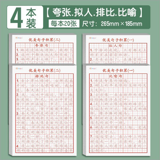 - Specification: 【Upgraded and Thickened】4 Books of Beautiful Sentences (Metaphor, Parallelism, Personification, Hyperbole)
