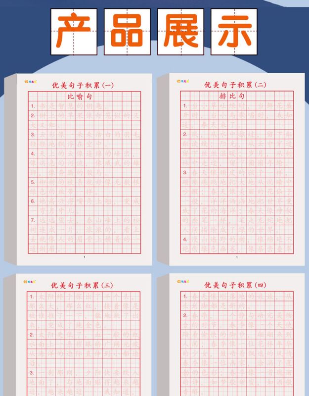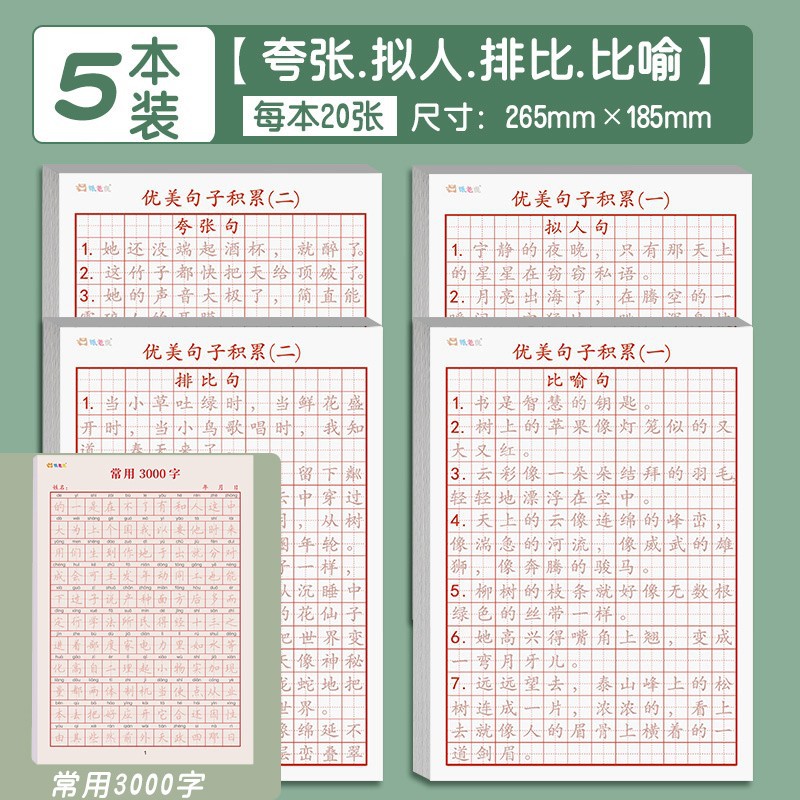 - Specification: 【Upgraded and Thickened】1 Set of 4 Books of Beautiful Sentences + 1 Book of 3000 Common Characters