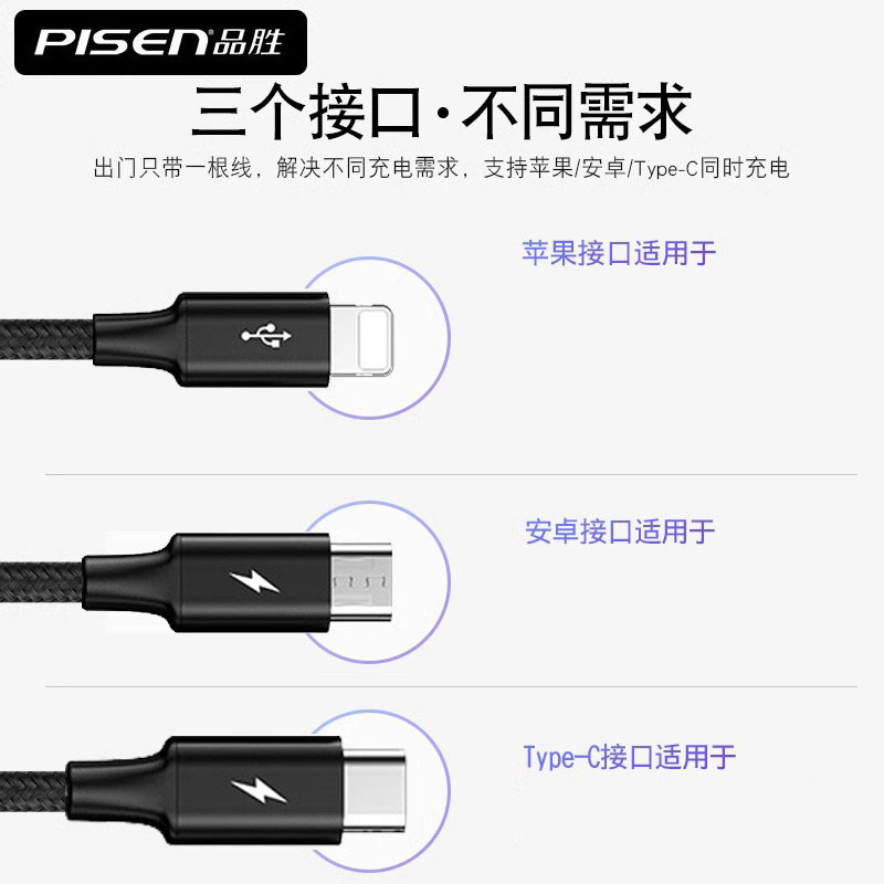 - Model: Magic Black 3-in-1 1.2m 3A fast charge★safe and does not damage the machine