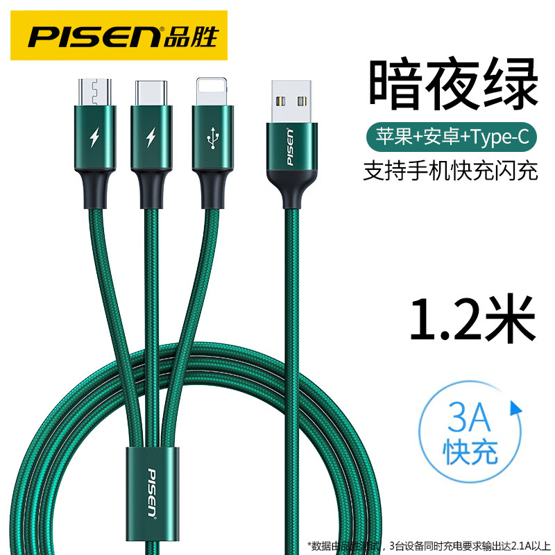 - Model: Dark green 3-in-1 1.2m 3A fast charge★safe and does not damage the machine