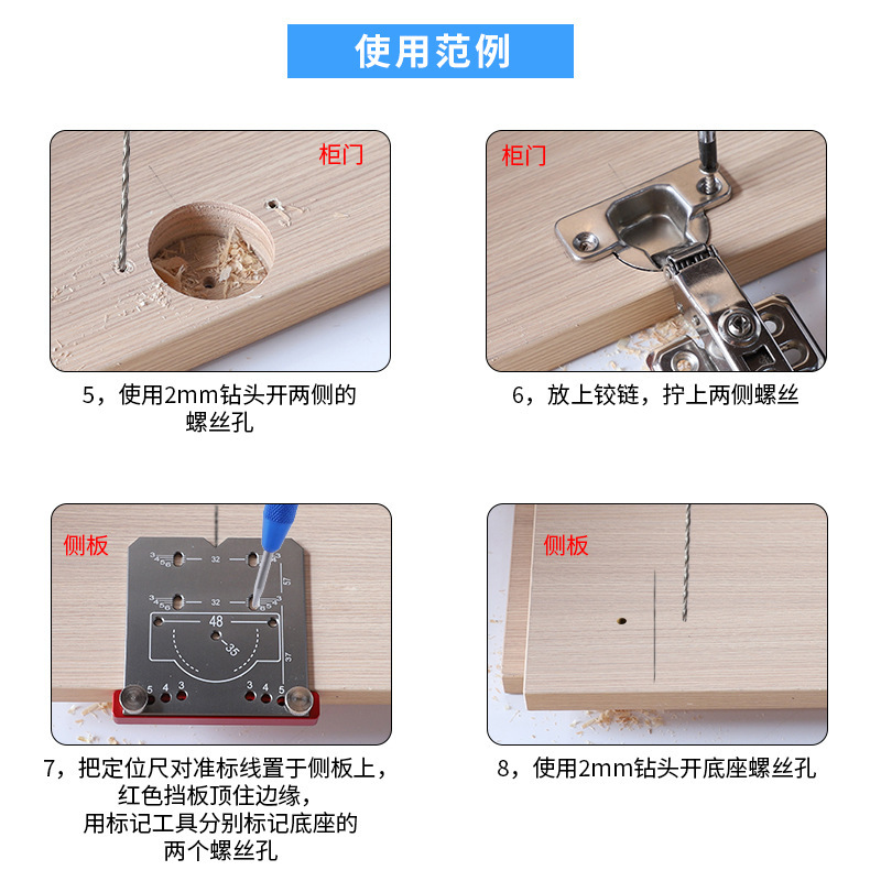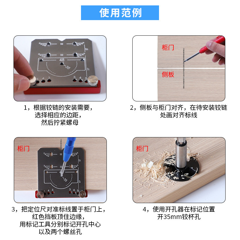 - Scope of application: Woodworking hinge opening positioning marks and markings