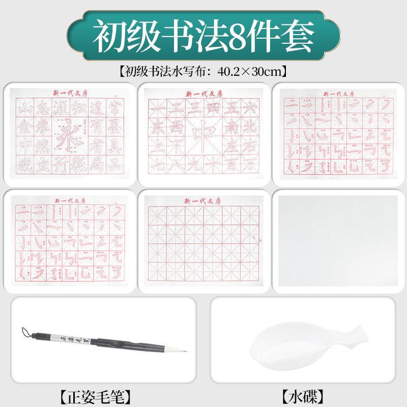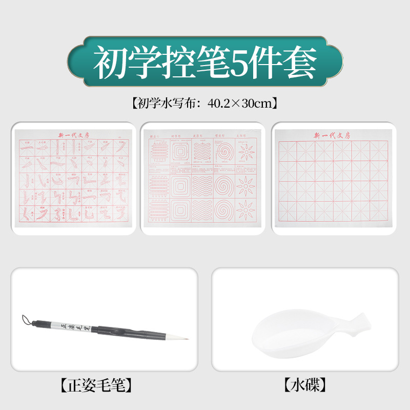 - Specifications: 5-piece set for beginners to control pens (pen control water writing cloth * 3 positive posture brushes * 1 pen water dish * 1)