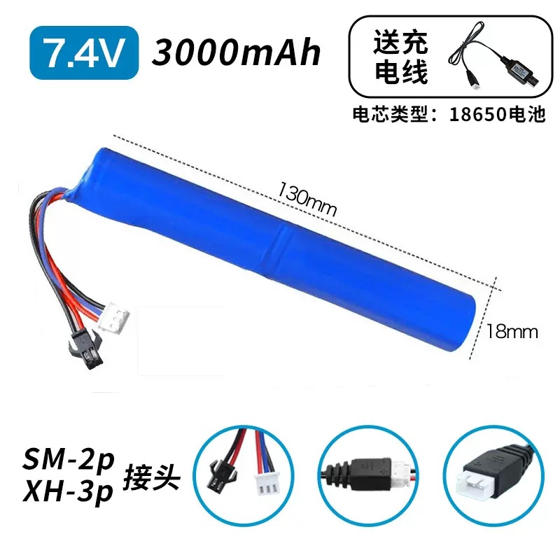 - 規格:7.4V186503000mah【SM-2P/XH-3P接頭】長條形