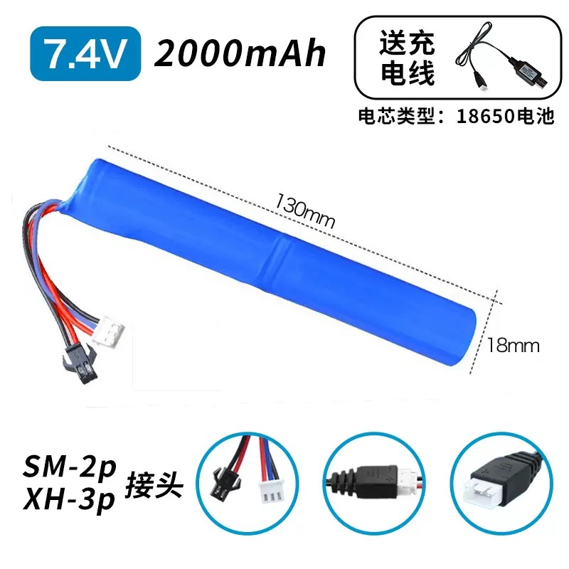 - 規格:7.4V186502000mah【SM-2P/XH-3P接頭】長條形