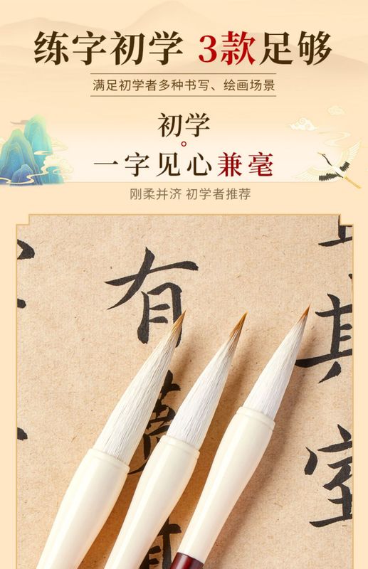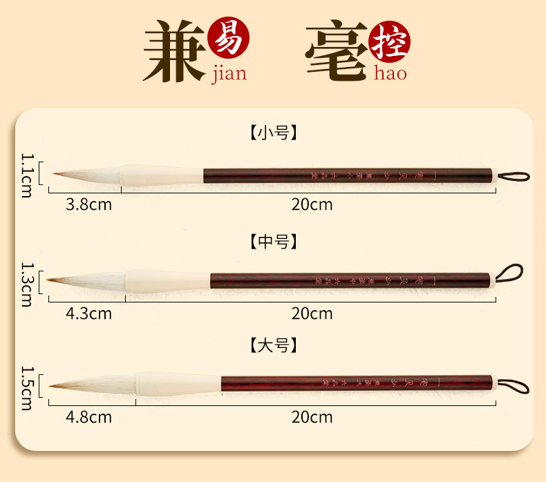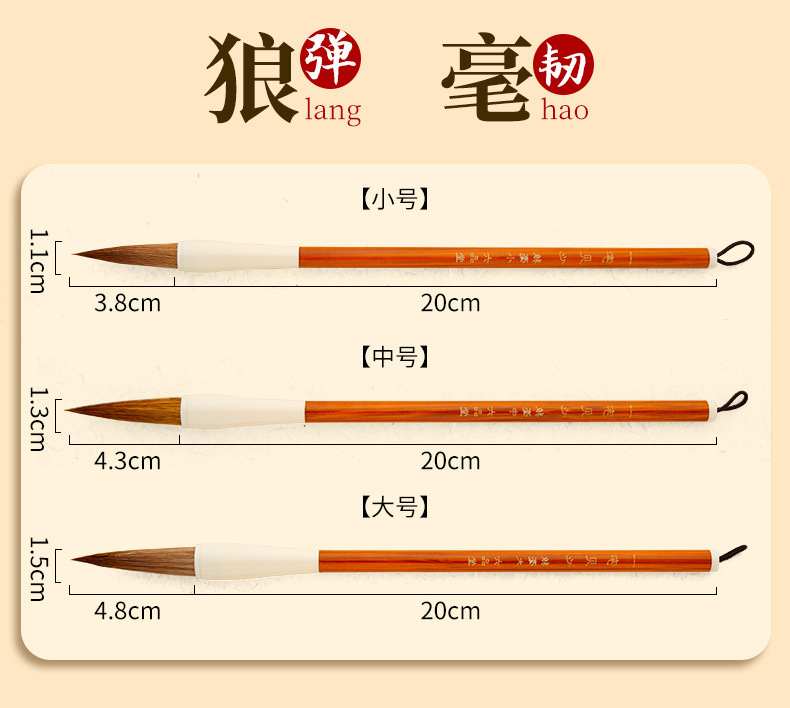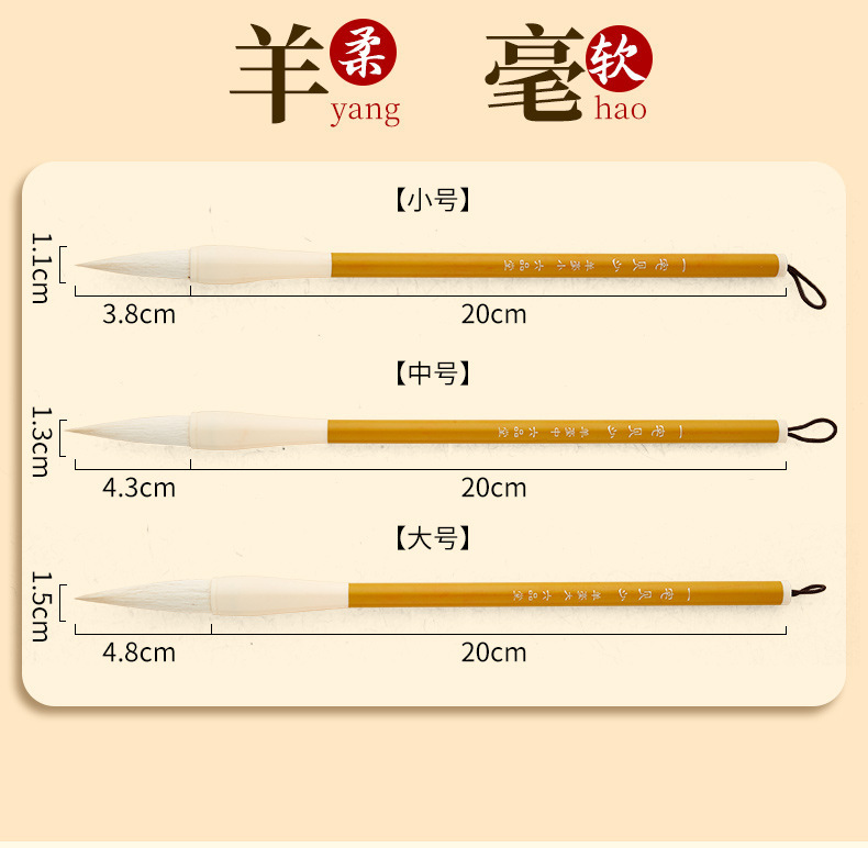 - Specification: Goat Hair (Large, Medium, Small) 3pc (Recommended for Soft and Absorbent Calligraphy)