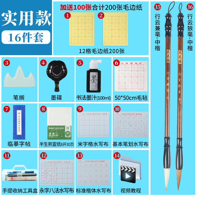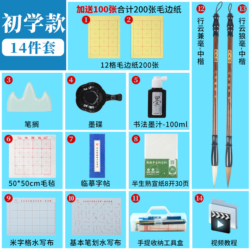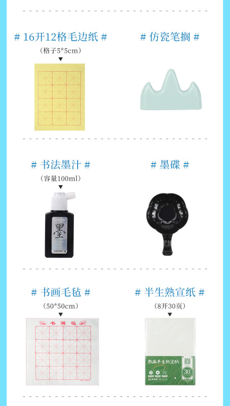 - Specifications: Practical 12-piece set for student calligraphy