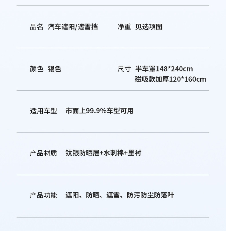 - Specifications: car snow shield