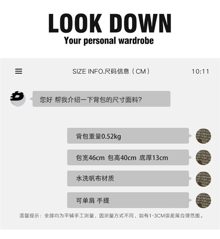 - Internal structure of the bag: Zipper secret pocket