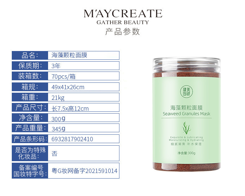 - Product Specification: 300g Seaweed Face Mask