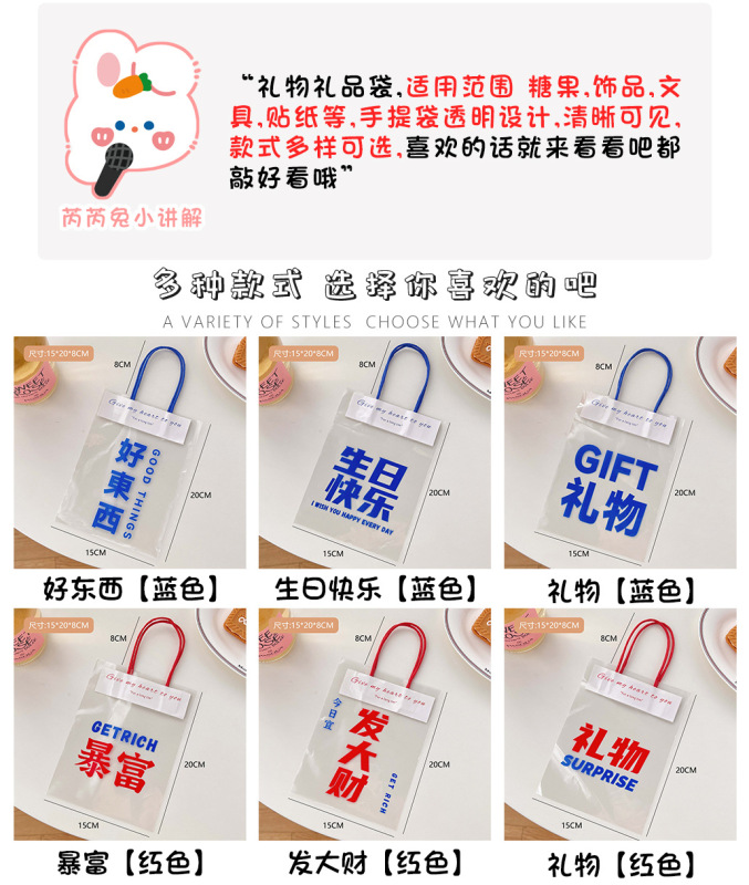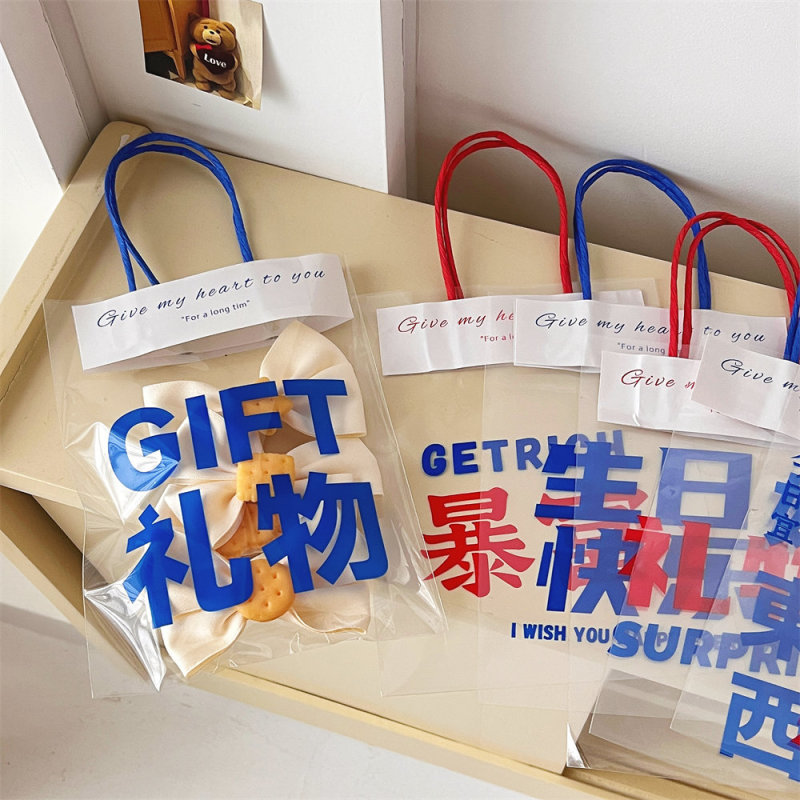 - Model Specifications: Size: 4# Gift [Blue]; Handle Size (Length*Width): 15*20*8cm; Color: Transparent