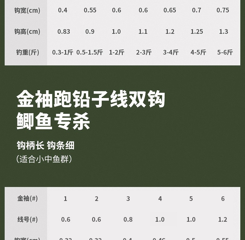 - Spec: Camouflage Lead Running Hook Gold Sleeve Barbed (Size 1)