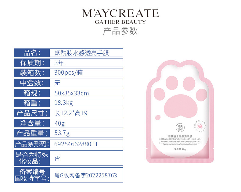 - Product specifications: Niacinamide water-feeling hand mask