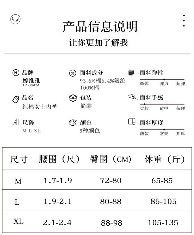 - Crotch lining composition: cotton