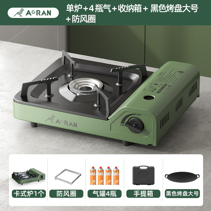 - Specifications (Length*Width*Height): Camping Stove + [Storage Box + 4 Bottles of Gas + Large Korean BBQ Plate Black] + Windscreen