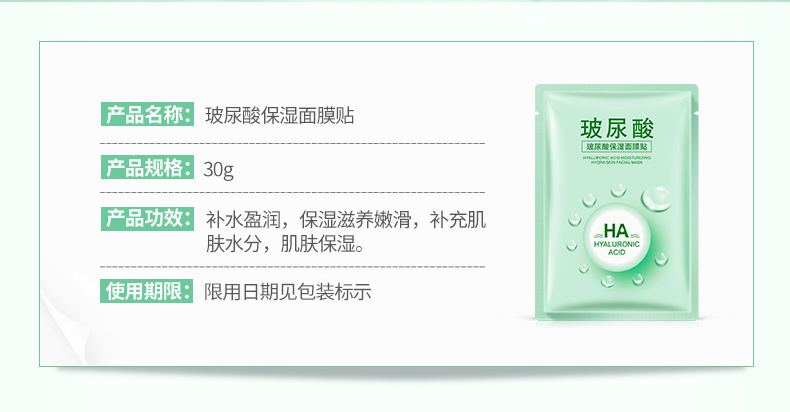 - Product specification: Hyaluronic Acid Nourishing Mask Sheet 30g