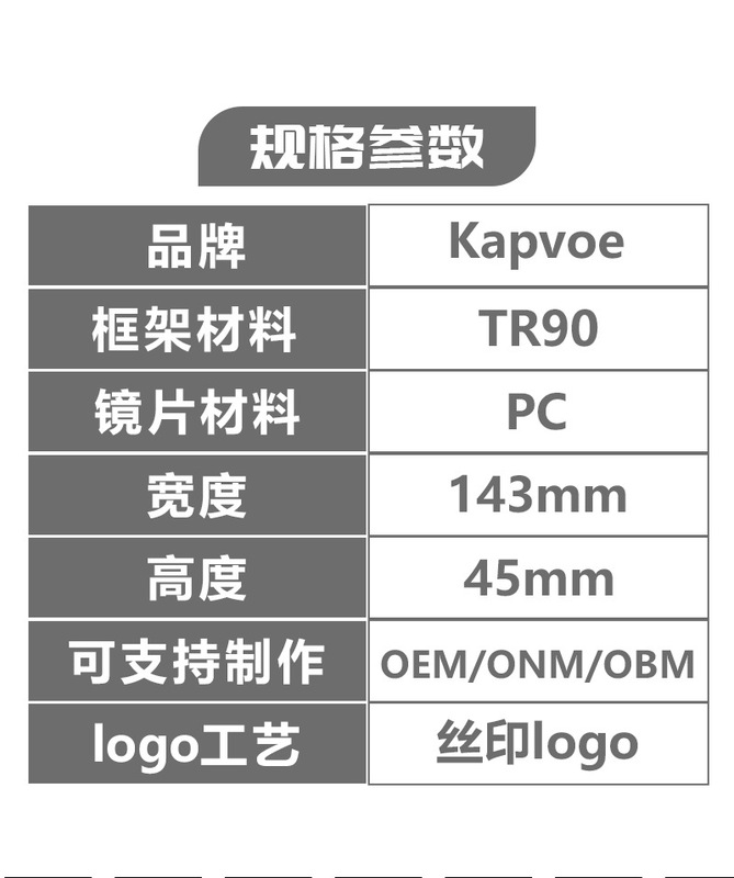 - Frame Material: TR90