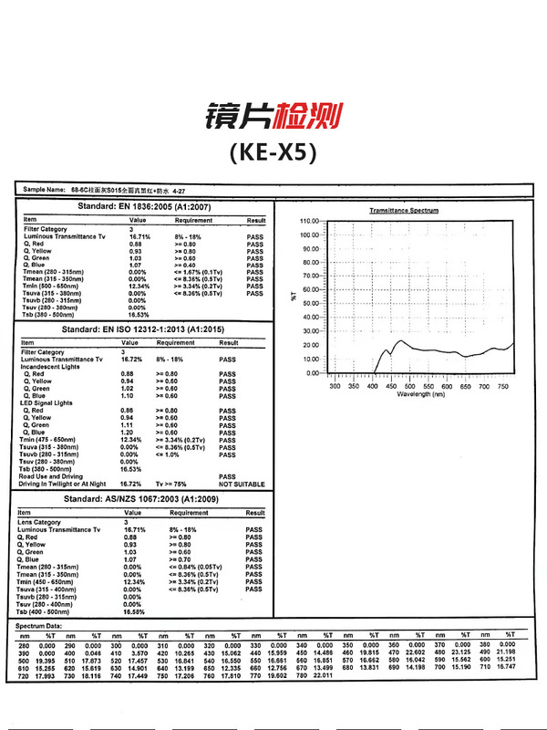 - Transmittance Classification: Category 1 / Light Sunglasses