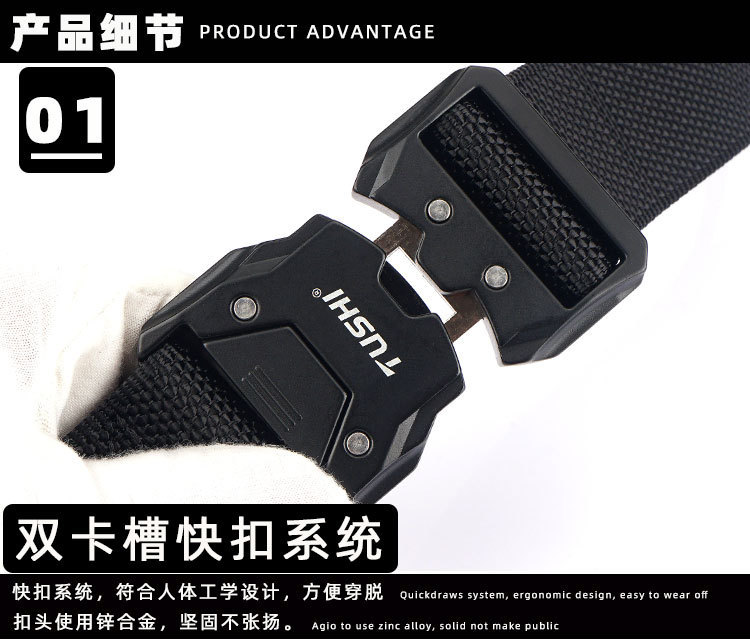 - Design details: Tactical buckle nylon belt