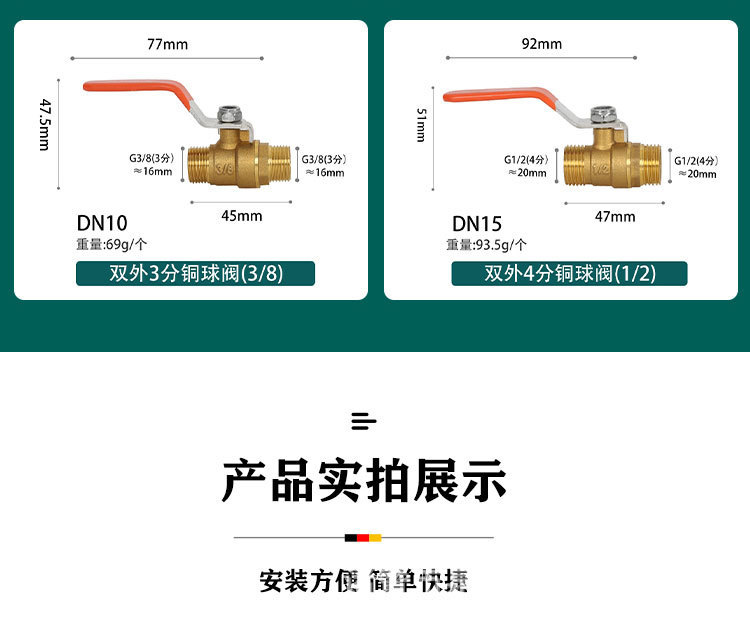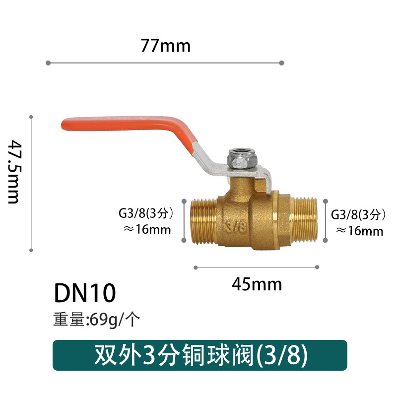 - Specifications: 3-point double outer wire copper small ball valve