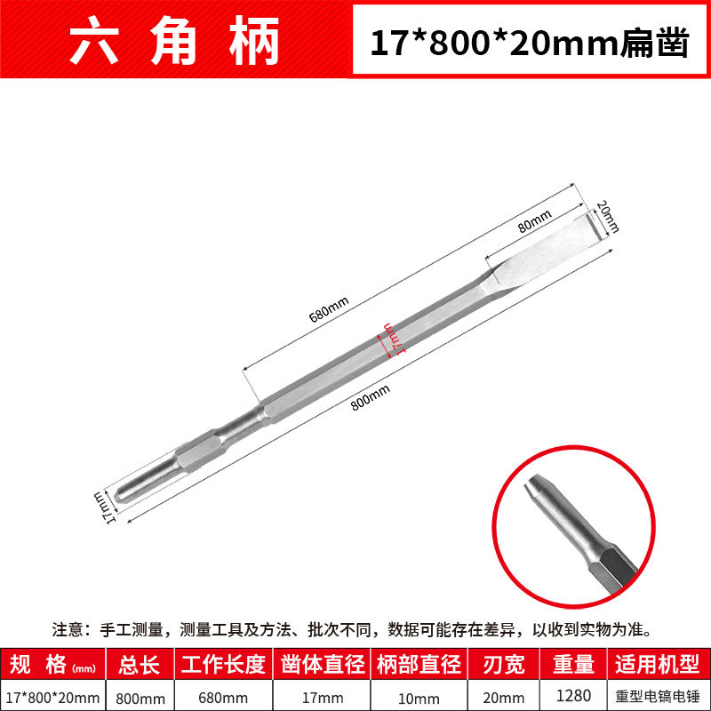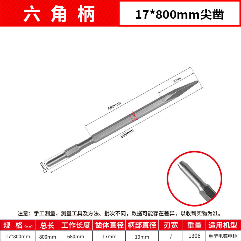 - Model: Hexagonal Flat 17*800mm Point Chisel