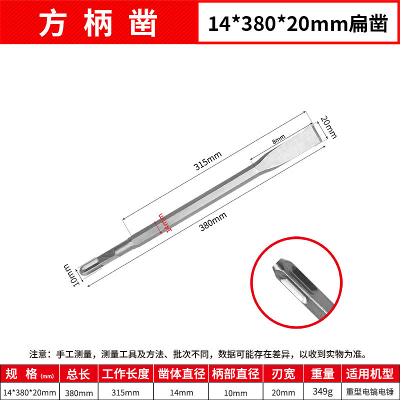 - Model: Square Handle 14*380mm Flat Chisel