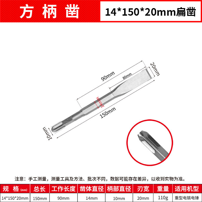 - Model: Square Handle 14*150mm Flat Chisel