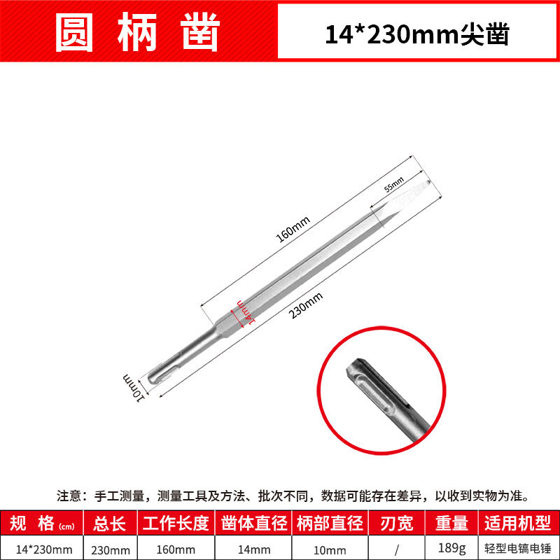 - Model: Round Handle 14*230mm Point Chisel