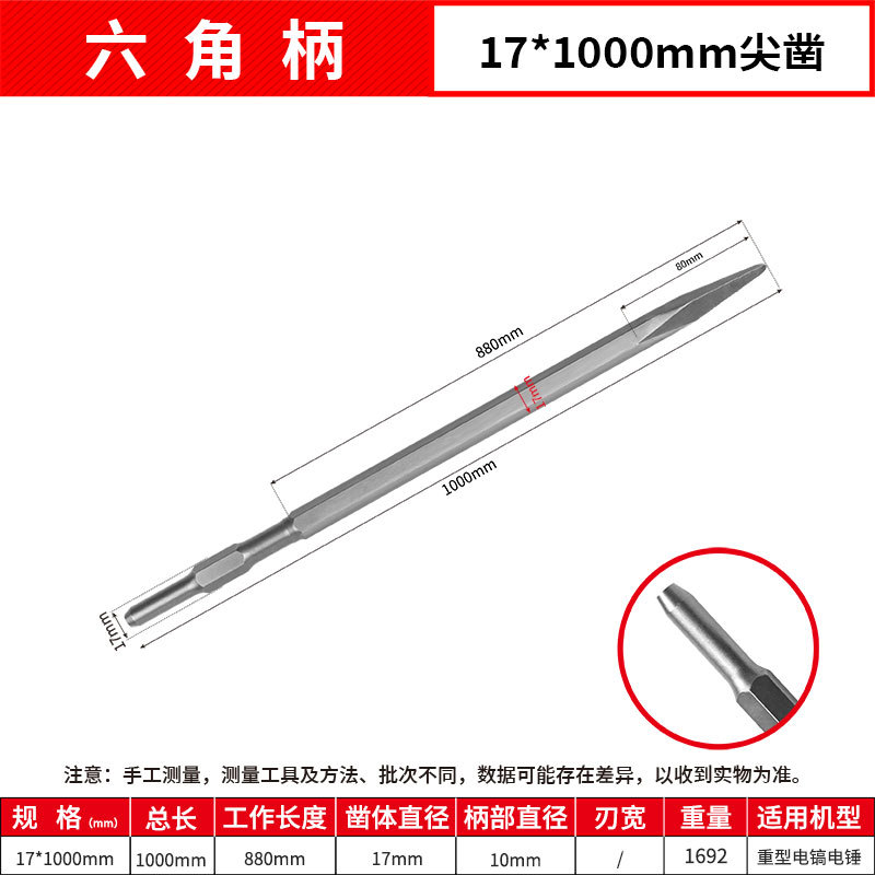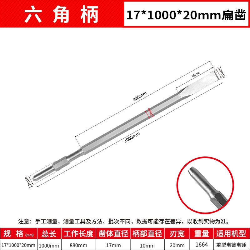 - Model: Hexagonal Flat 17*1000mm Point Chisel