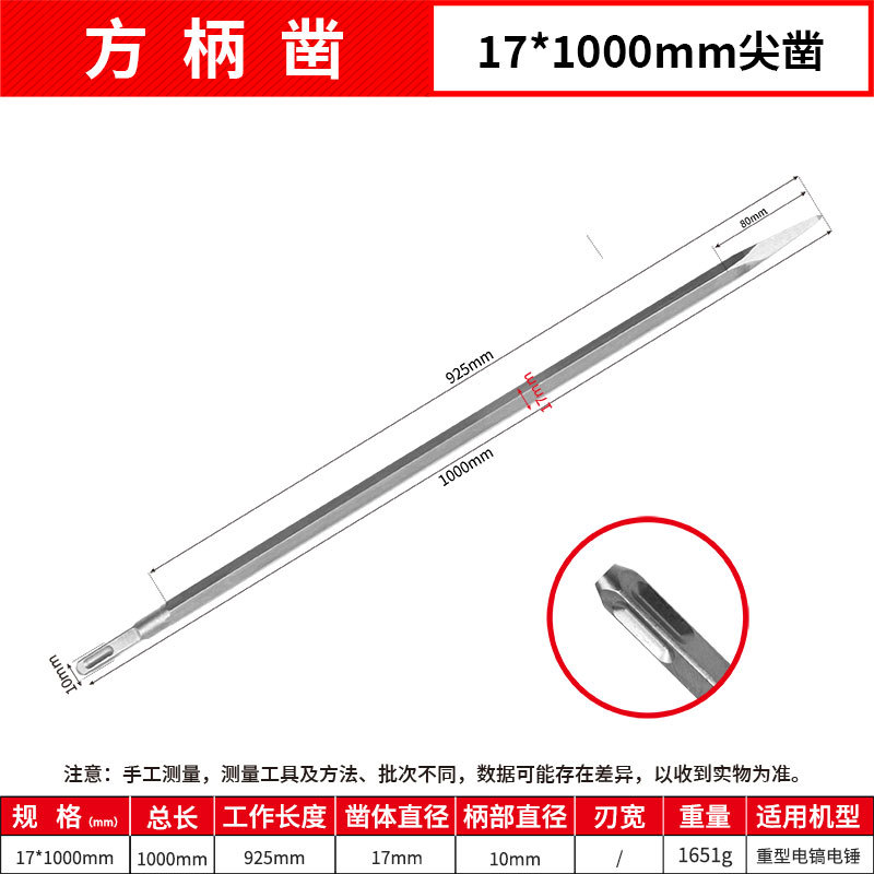 - Model: Square Handle 17*1000mm Point Chisel