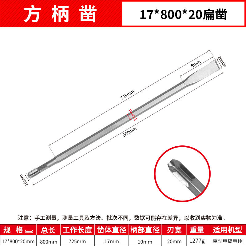- Model: Square Handle 17*800mm Flat Chisel