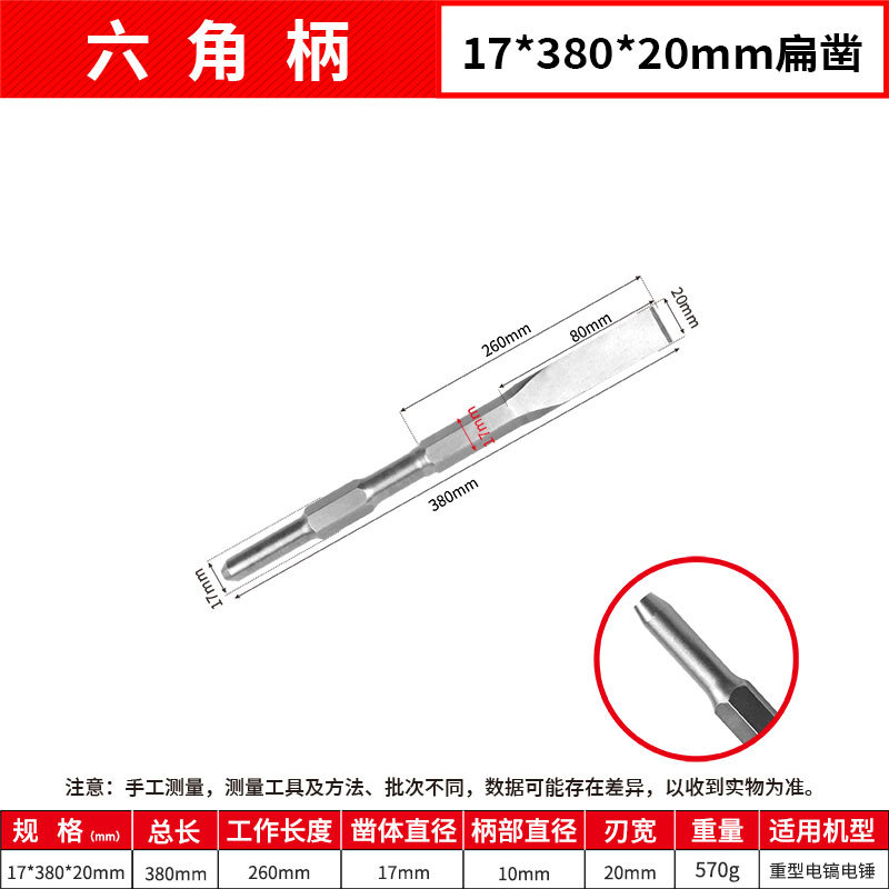 - Model: Hexagonal Flat 17*380mm Flat Chisel