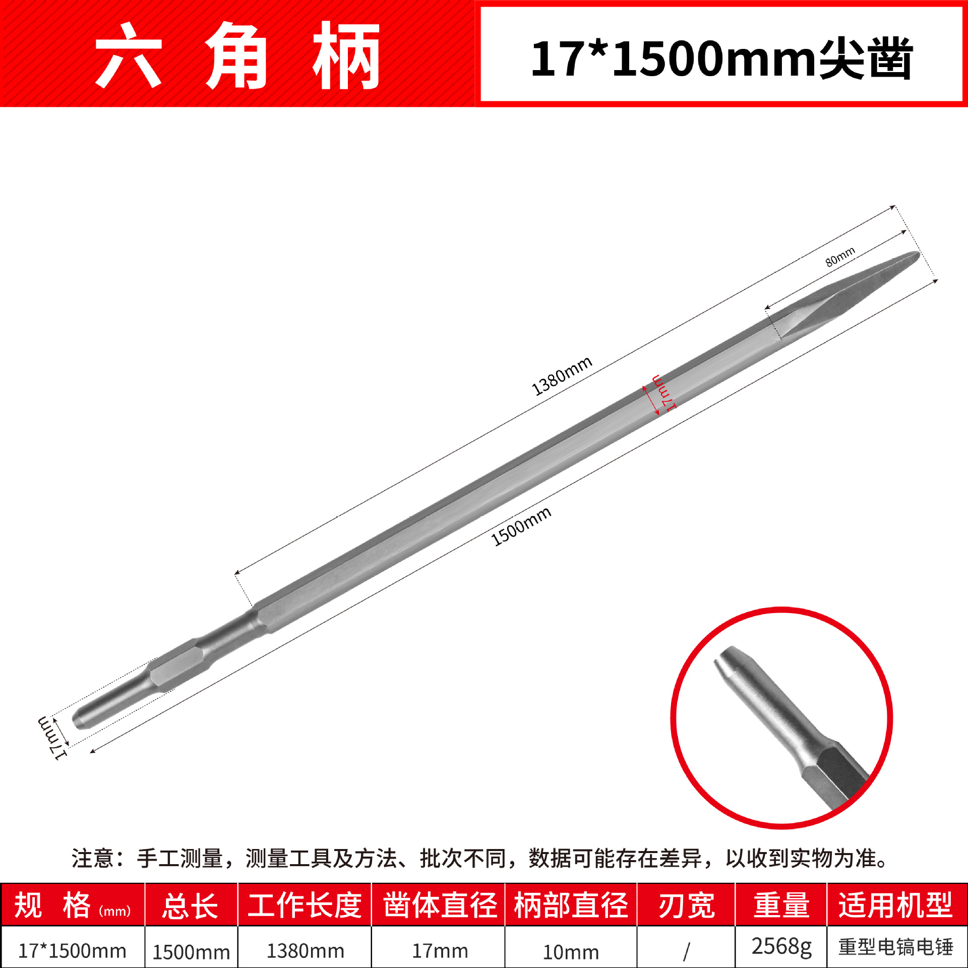 - Model: Hexagonal Flat 17*1500mm Point Chisel