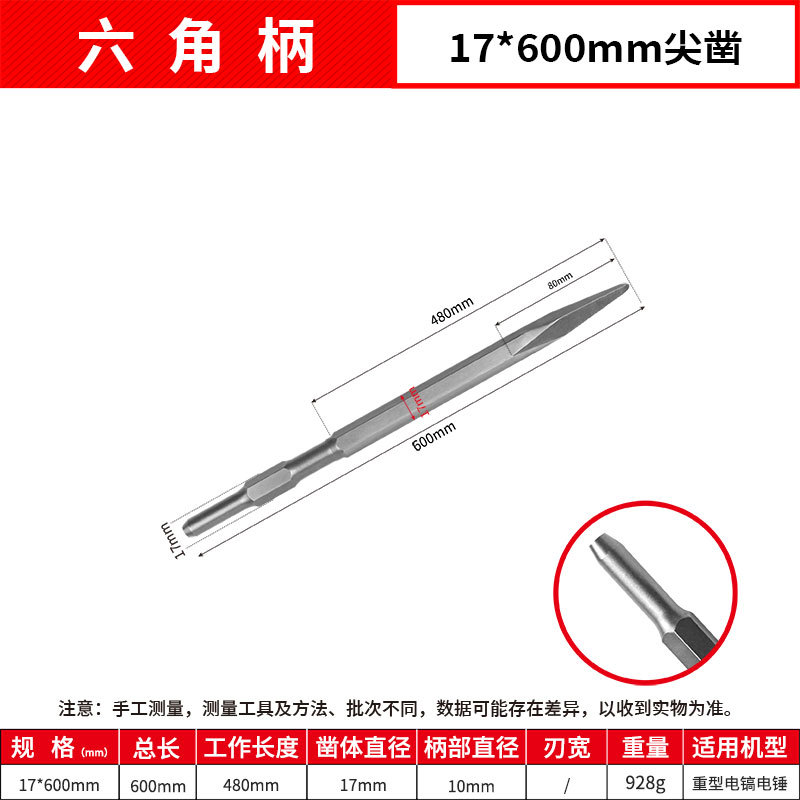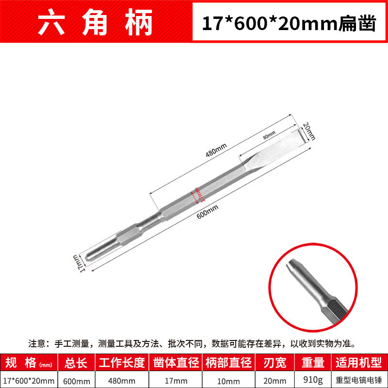 - Model: Hexagonal Flat 17*600mm Point Chisel