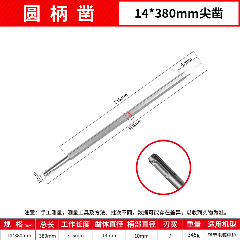 - Model: Round Handle 14*380mm Point Chisel