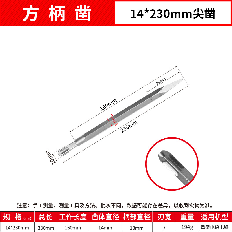- Model: Square Handle 14*230mm Point Chisel