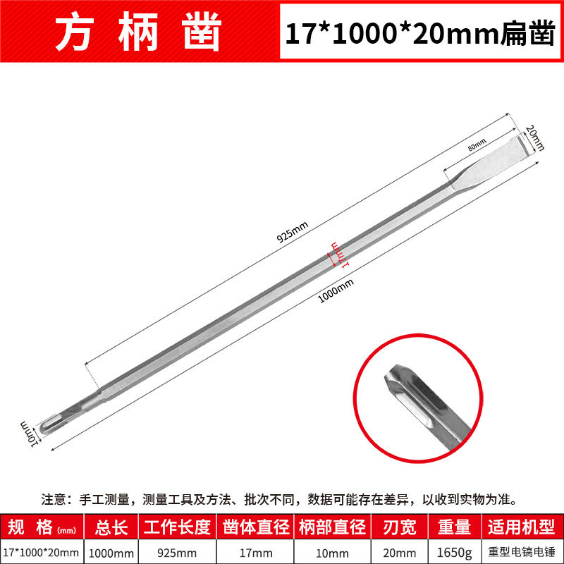 - Model: Square Handle 17*1000mm Flat Chisel