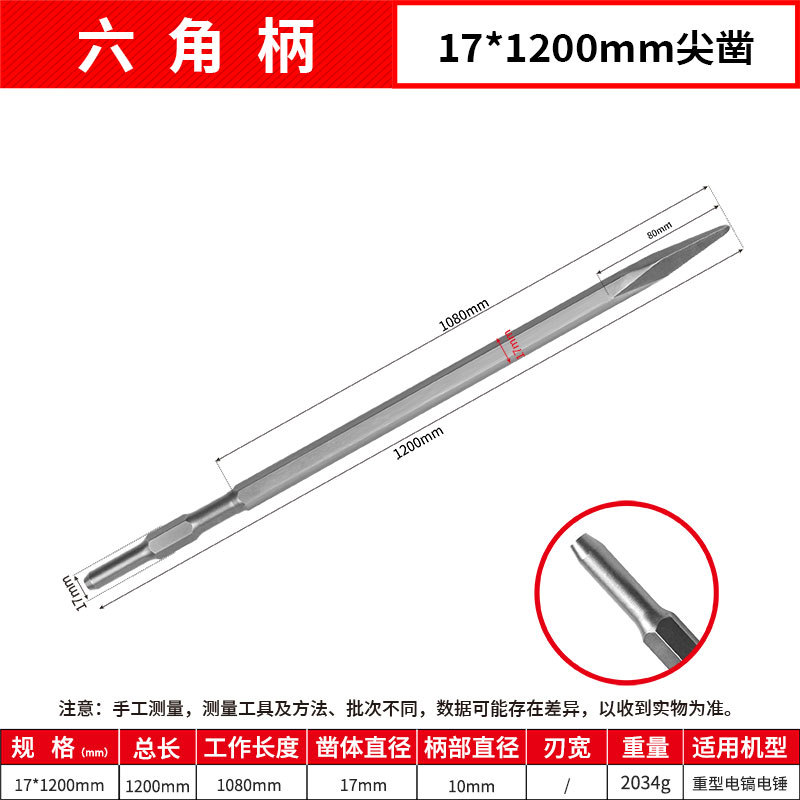 - Model: Hexagonal Flat 17*1200mm Point Chisel