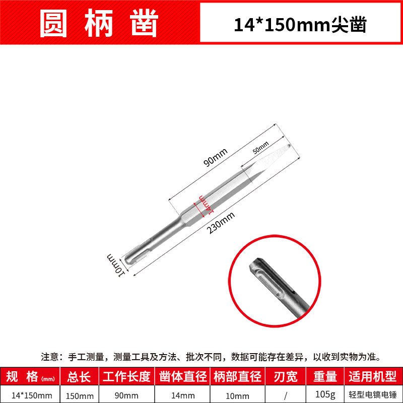 - Model: Round Handle 14*150mm Point Chisel