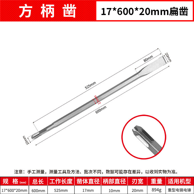 - Model: Square Handle 17*600mm Flat Chisel