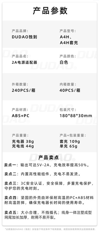 - Applicable Model: A4H【Type-C Set with Packaging】CCC Certified