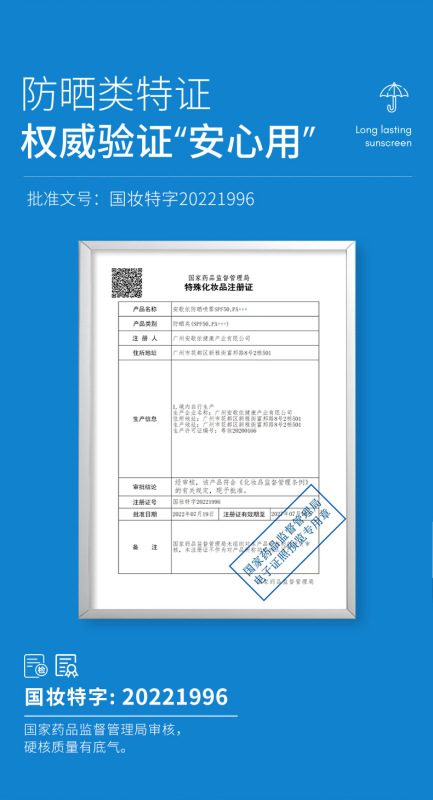 - Special Use Cosmetics Certificate Number: National Beauty Special Character 20221996