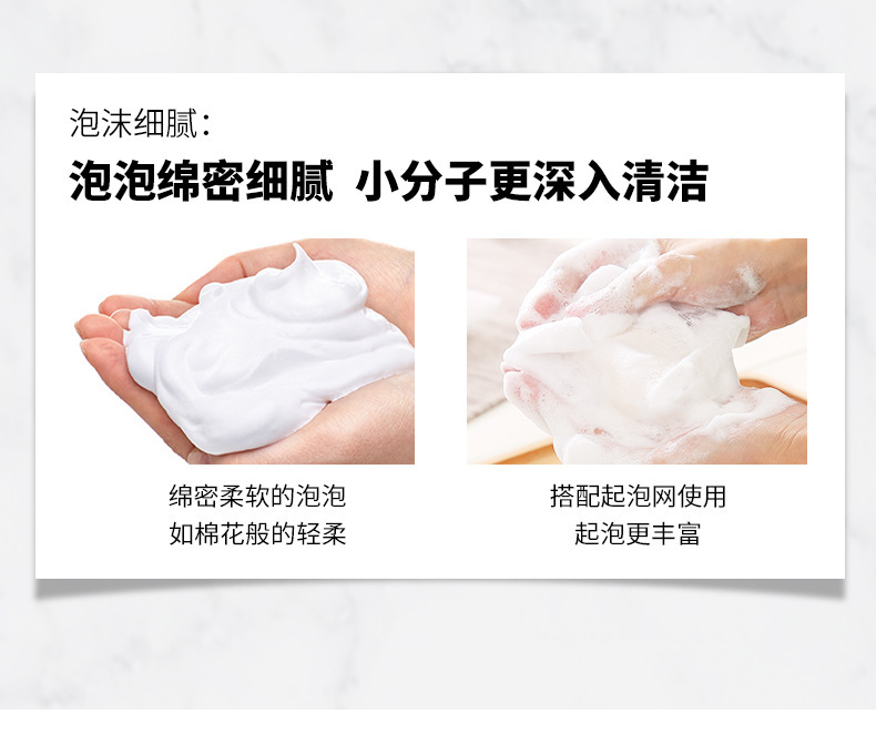 - Foaming level: foam cleansing