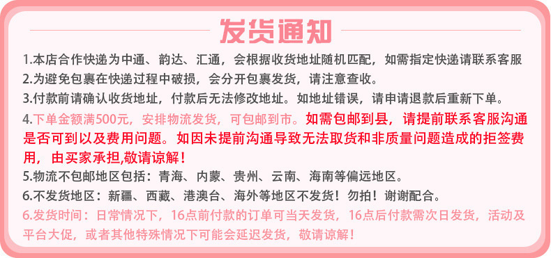 Delivery time: For products in stock, they will be shipped within 3 working days (excluding holidays) after you place your order and make payment. You will receive our notification after shipment.