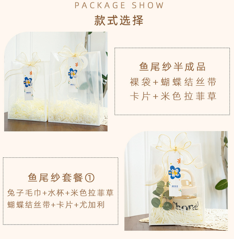 - Specifications: Color: Fish-tail ribbon [Semi-finished]; Size: Small 18*10*26cm; Handle size (Length*Width): White border